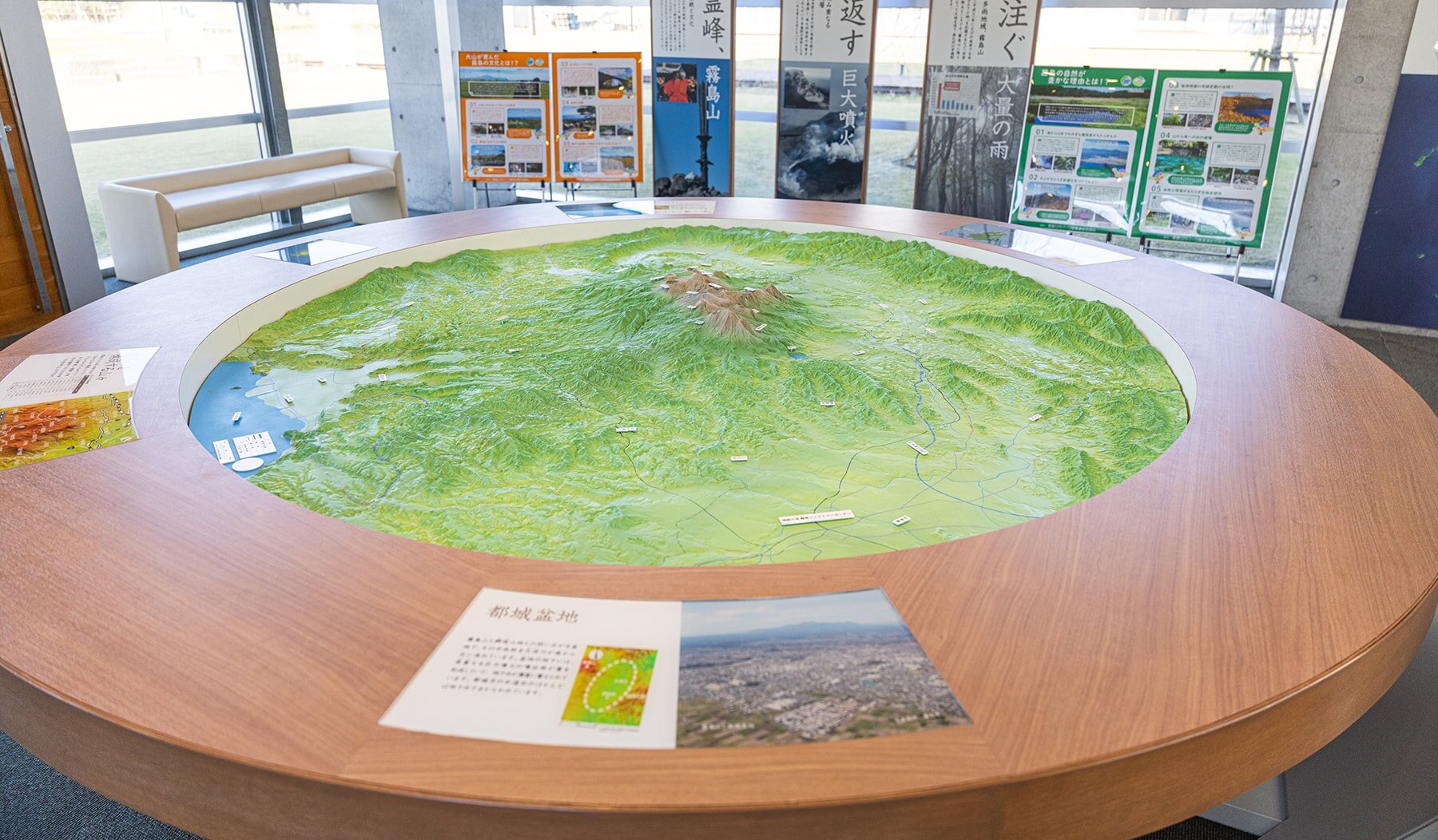 また、 “芋焼酎のふるさと、霧島”をテーマとした『霧の蔵ミュージアム』では、入口を入ってすぐにシラス台地の巨大な地形模型が出迎えてくれる。火山活動によって形成されてきた南九州全体や都城盆地の地形を立体的なジオラマで一望すれば、地形の起伏の多さや、シラス台地の広がりを体感できるだろう。