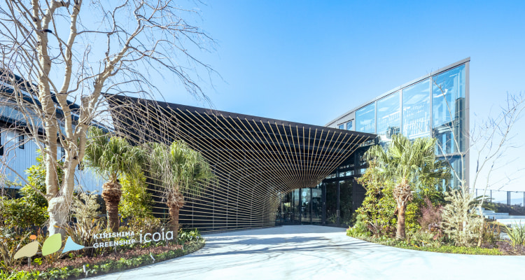 スターバックスとのコラボレーションプロジェクトから生まれた「KIRISHIMA GREENSHIP icoia」。ガラス張りの植物園「めぐりの森」では亜熱帯植物を楽しめるほか、屋上庭園「見晴らしの丘」、芝生エリア「いこいの庭」など、そのどれもが都城の風土と調和した"いこい"の場です。
