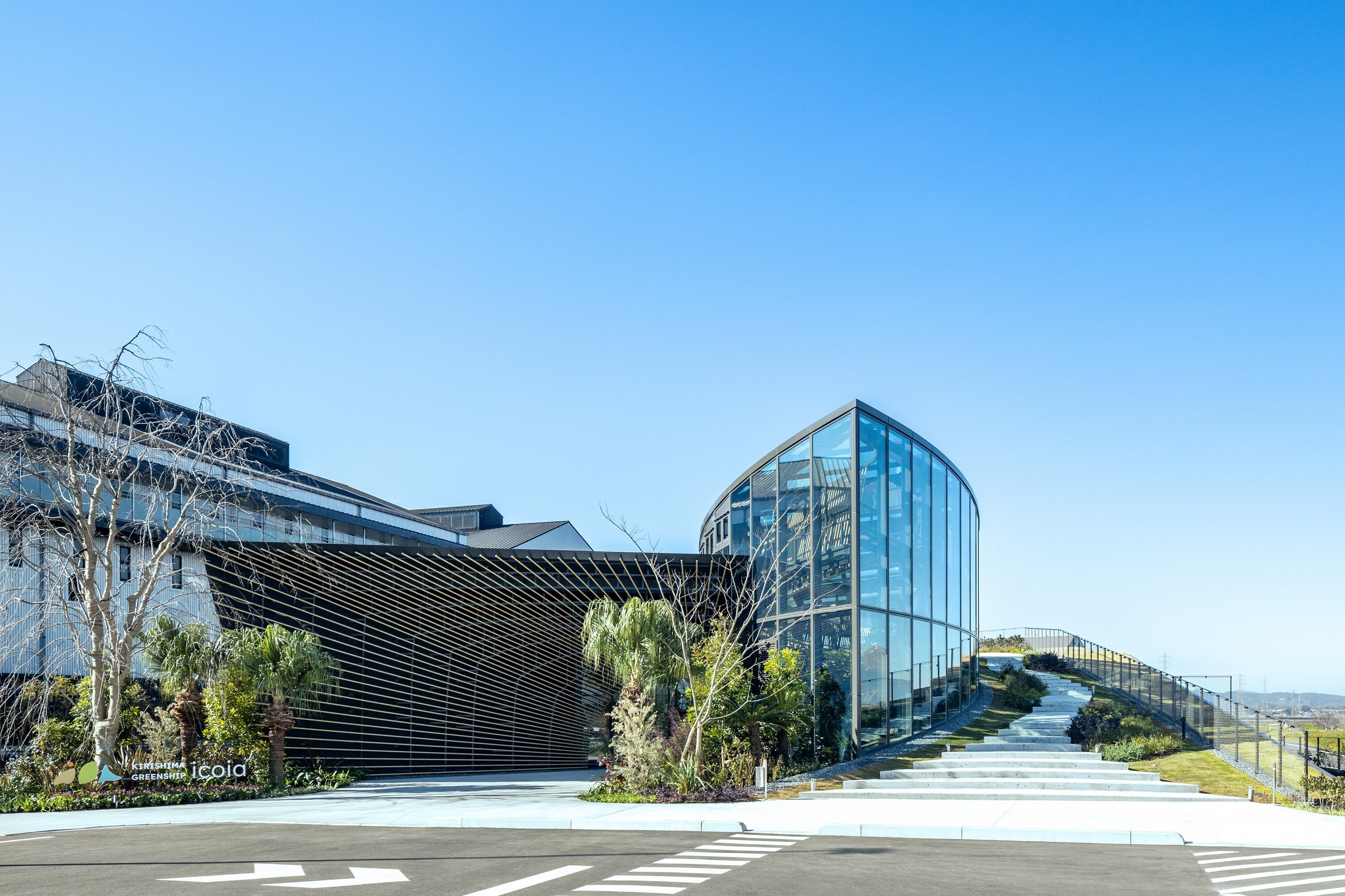 「KIRISHIMA GREENSHIP icoia」を手掛けたのは、建築家・隈研吾氏。2社が大切にする地域社会と自然環境への想いと、隈氏が大切にしている「その土地の環境、文化に溶け込む建築」の想いが融合したことで、都城の風や光、緑を感じられる建築が実現しました。