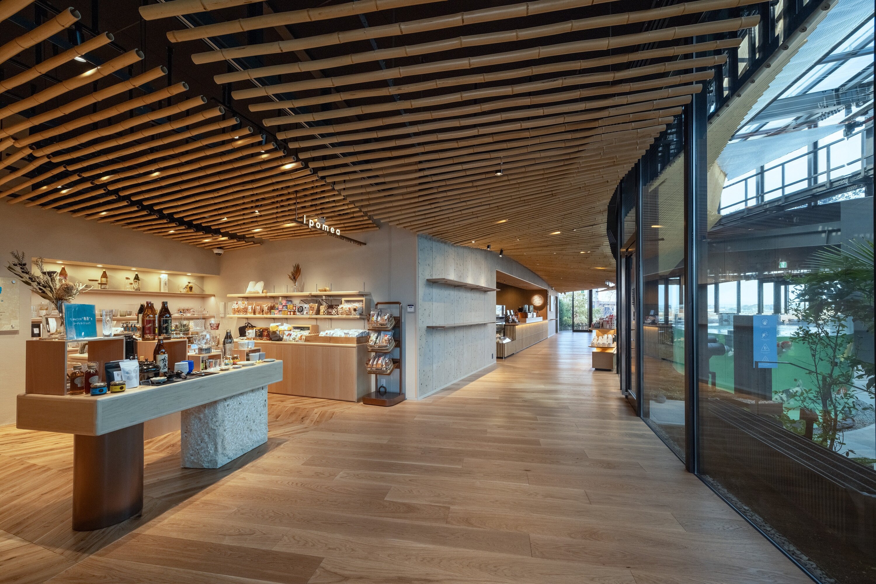 - 建築家・隈研吾氏の「その土地の環境、文化に溶け込む建築」と霧島酒造とスターバックスの想いが融合した、竹をふんだんに使用した自然の恵みを感じられる建築。