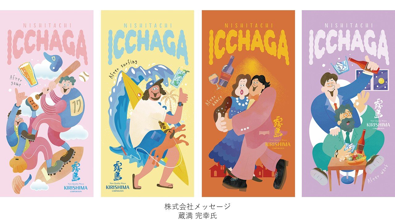 肩の力を抜いて過ごす打ち上げ後のひとときをテーマに、ポップな色彩でありながらどこか懐かしいデザインで、気取らないニシタチの心地よさを表現している。季節ごとの楽しみの中に、思い思いにくつろぐ人々の気配と穏やかな時間の流れを感じさせ、街のぬくもりをやさしく伝える作品であった。