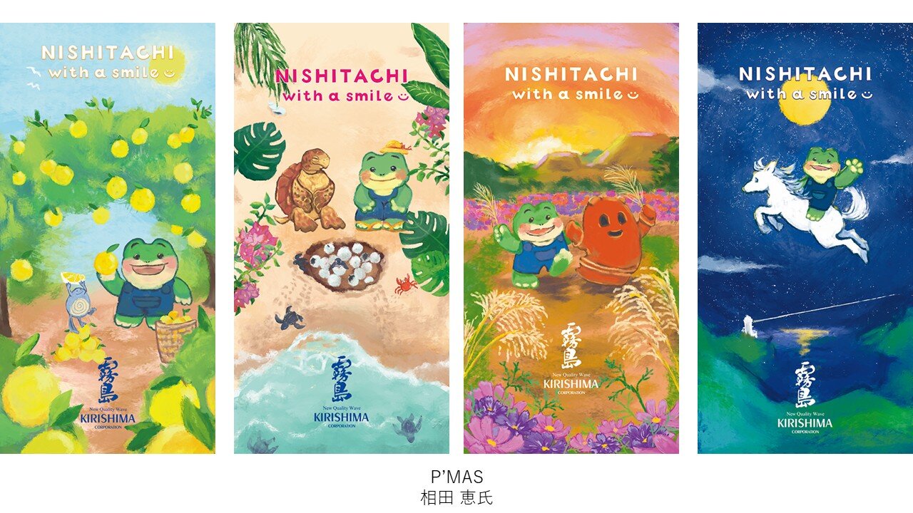 霧島酒造では、2001年より西橘通りのさらなる活性化の一助になればという想いから、「ニシタチ霧島フラッグ」を街路灯に掲揚しております。「最優秀賞」、「優秀賞」、「霧島特別賞」の3作品に加えて、西橘通りの飲食店様をはじめとする関係者の皆様に選出いただく「ニシタチ特別賞」 を1作品選出いたしました。だれもが「いっちゃが」と感じるような心地よい4作品を、ニシタチでぜひご覧ください。